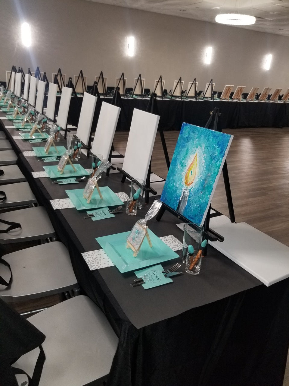 We provide all the materials necessary for you to conduct your own paint party. Minimum purchase 10 kits. This kit must be purchased one month before your event.